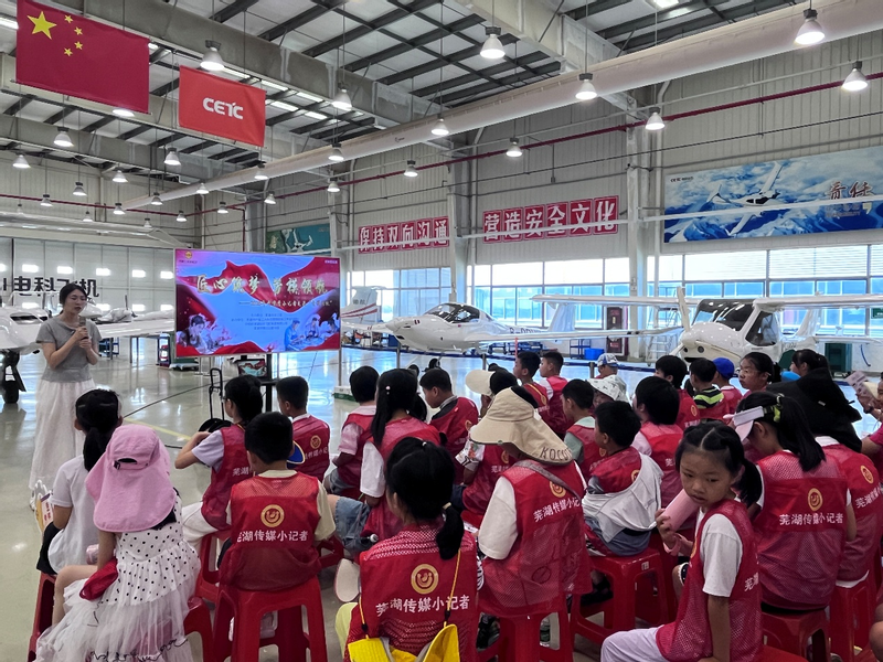 本期活动聚焦小学生群体,组织芜湖传媒小记者中心的40余名小学生记者走进中电科芜湖钻石飞机制造有限公司(以下简称“电科飞机”),以沉浸式体验教育为载体,让孩子们在亲眼所见、亲耳所闻、亲身感受中,传承和弘扬劳模精神、劳动精神、工匠精神。活动现场,小学生们在工作人员的悉心引导下,参观了电科飞机总装车间和机库。长三角大工匠、安徽工匠年度人物李勇为小朋友们分享了自己的成长故事。李勇以亲身经历鼓励孩子们努力学习、勇于探索。互动环节中,小朋友们踊跃提问,现场气氛热烈。